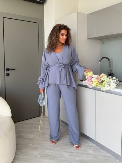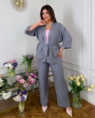 Брючний костюм двійка сірий №255672