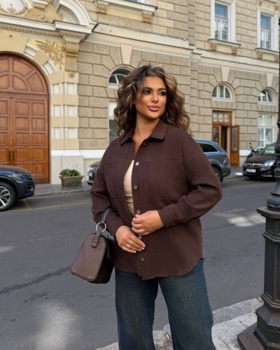 Стильна сорочка в клітинку коричнево-блакитна №255057