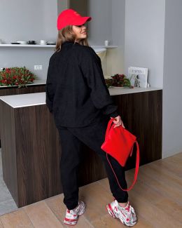 Стильний костюм з мікровельвету чорного кольору №254228