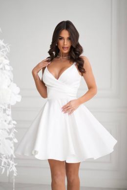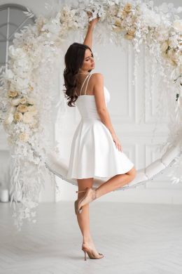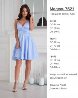 Атласна сукня з довжиною вище колін, розкльошеною спідницею «сонце», з подвійними брителями