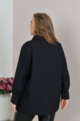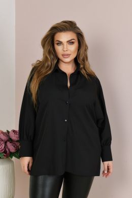 Блузка має прямий вільний та подовжений силует, рукав довгий цільнокроєний, на високому манжеті з гудзиком. Комірець зі стікою. Застібається блузка на гудзики по передній планці.