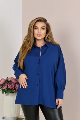 Блузка має прямий вільний та подовжений силует, рукав довгий цільнокроєний, на високому манжеті з гудзиком. Комірець зі стікою. Застібається блузка на гудзики по передній планці.