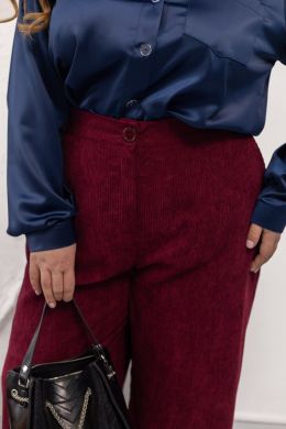 Ці класичні брюки з вельвету – стильне поєднання фактурності та комфорту. М’яка тканина з виразним рубчиком додає образу глибини та благородного вигляду, а стрілки формують витончений силует і візуально подовжують ноги. Модель доповнена зручними кишенями, що зберігають практичність без зайвого об’єму. Ззаду на талії – еластична вставка, яка забезпечує комфортну посадку та акуратно підлаштовується під фігуру. Брюки застібаються на ґудзик і блискавку, гарантуючи надійну фіксацію та бездоганний вигляд. Ідеальний варіант як для офісу, так і для стильних повсякденних образів. Легко комбінуються із сорочками, блузами чи жакетами, а також чудово виглядають як із підборами, так і з лаконічним взуттям на низькому ходу. Це ті брюки, які додають образу впевненості й шарму з першого погляду. Пояс НЕ входить в комплект.