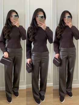 Матові шкіряні штани вільного крою