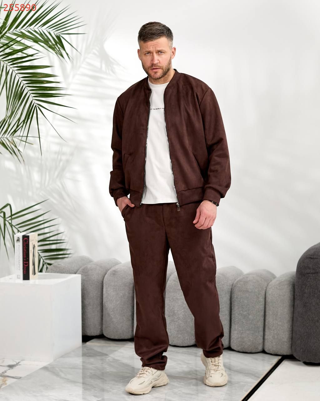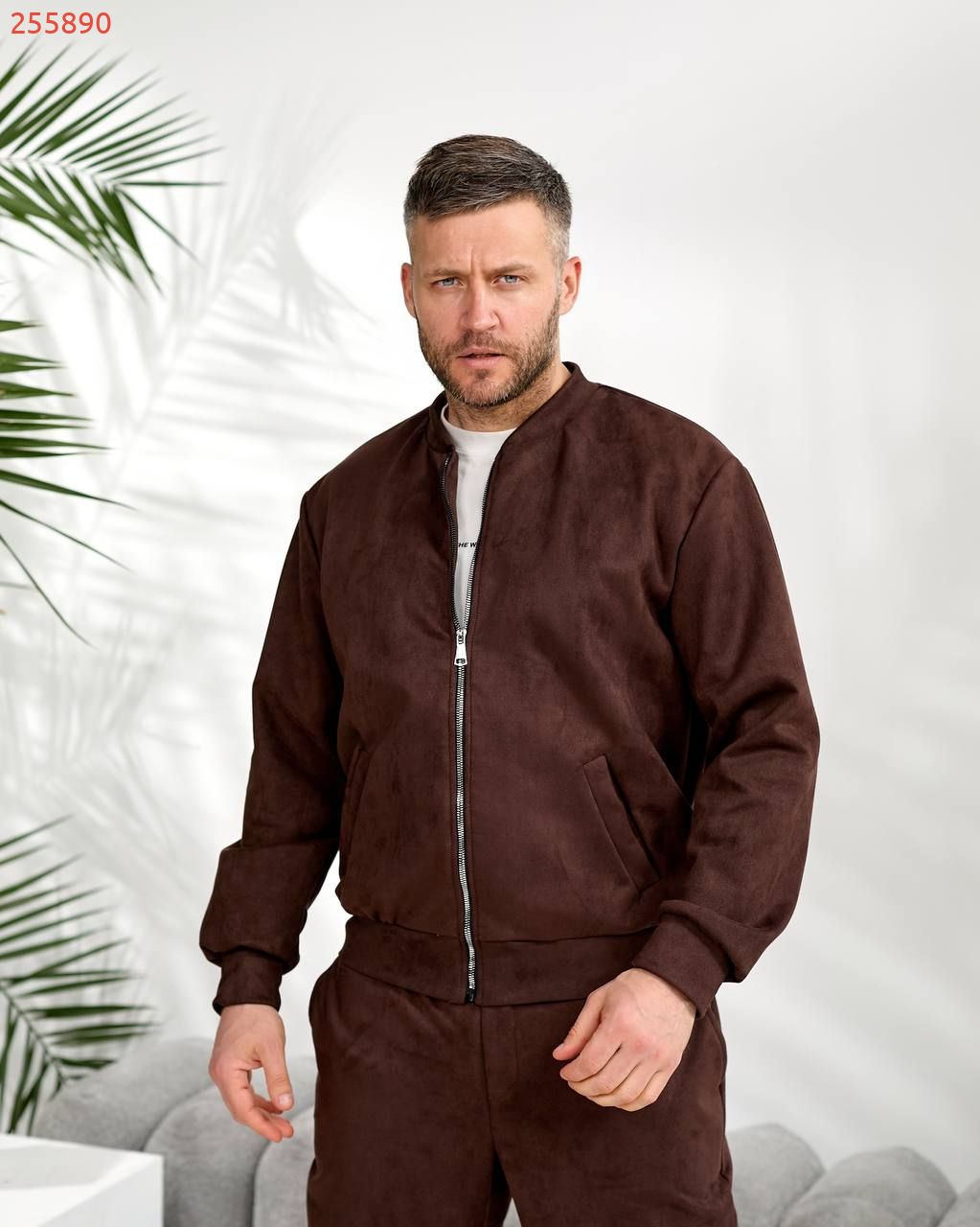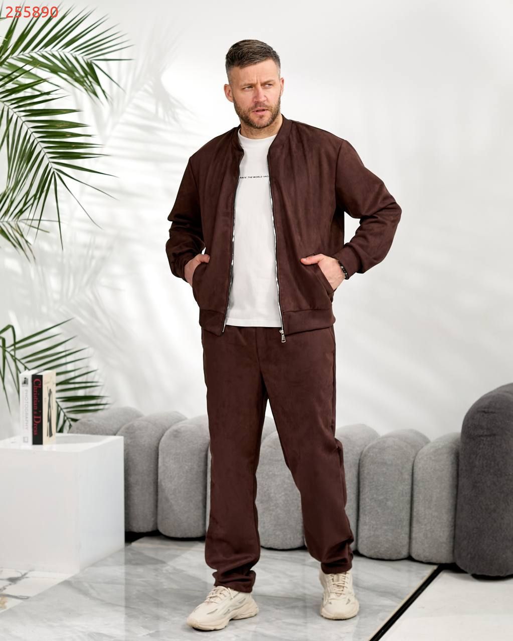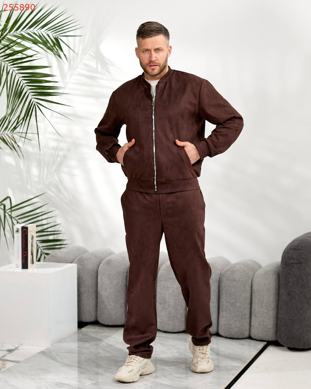 Чоловічий костюм з замшу на дайвінгу шоколад №255890