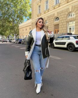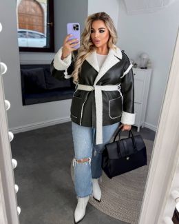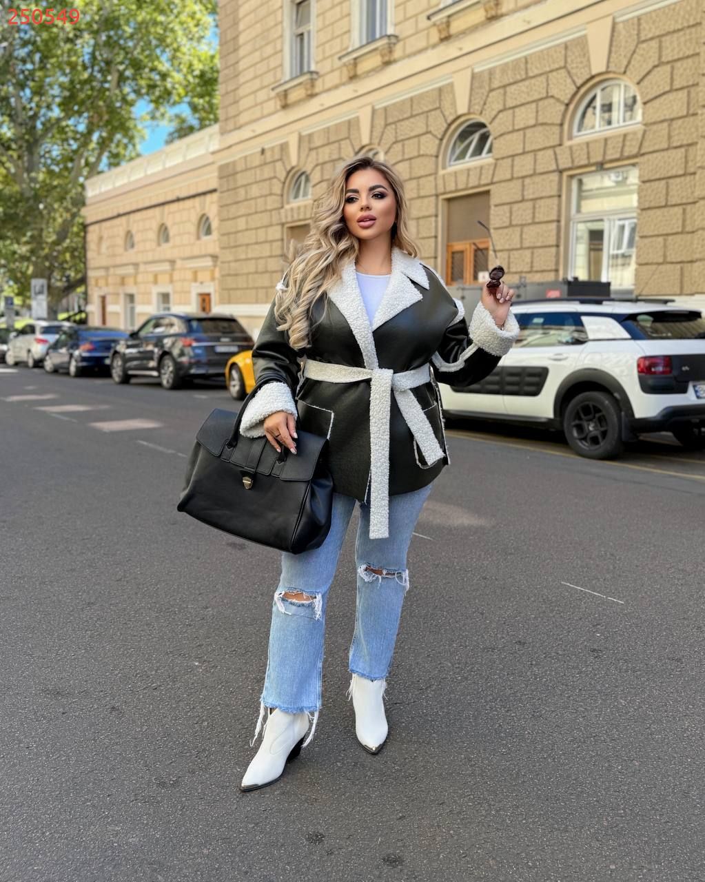 Тканина: якісна турецкая екошкіра з імітацією натуральної шкіри+ штучне хутро ягня. М’яка, гарна . Застібки - ґудзики. Ідеальна на осінь та зиму. додається пояс - для створення талії.