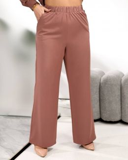 Штани вільного крою прямі, посадка висока, в поясі на гумці, з кишенями.