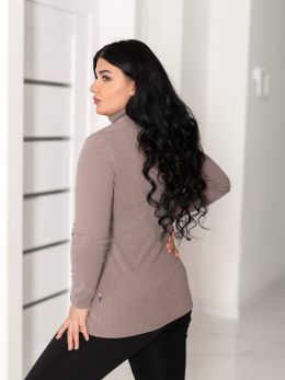 Комір-стійка додає витонченості,збоку в шов встрочена нашивка, а лаконічний крій робить цей гольф універсальним – він однаково добре виглядає з джинсами, спідницею чи під жакетом.
