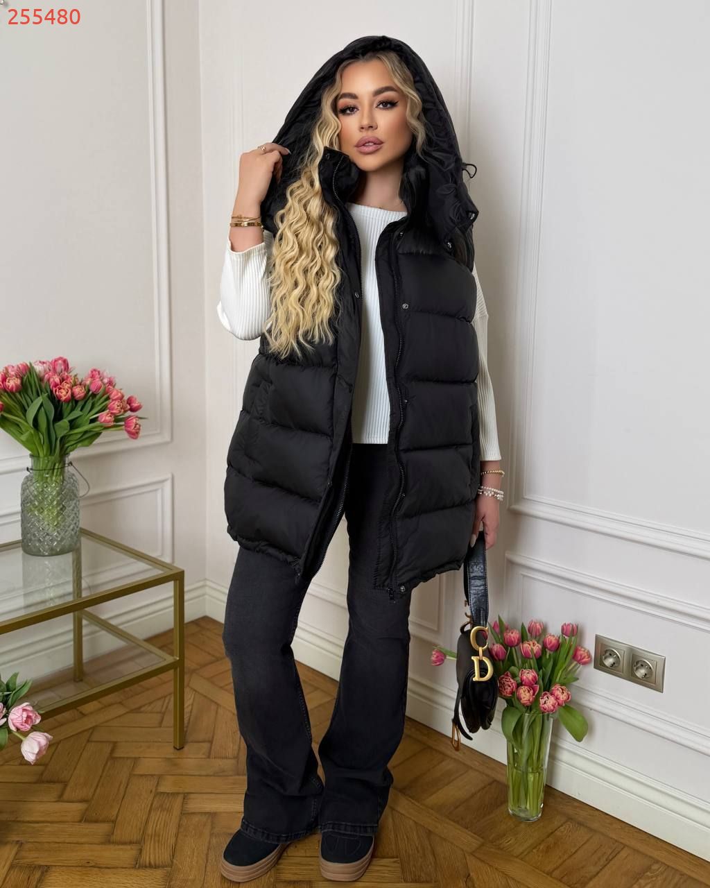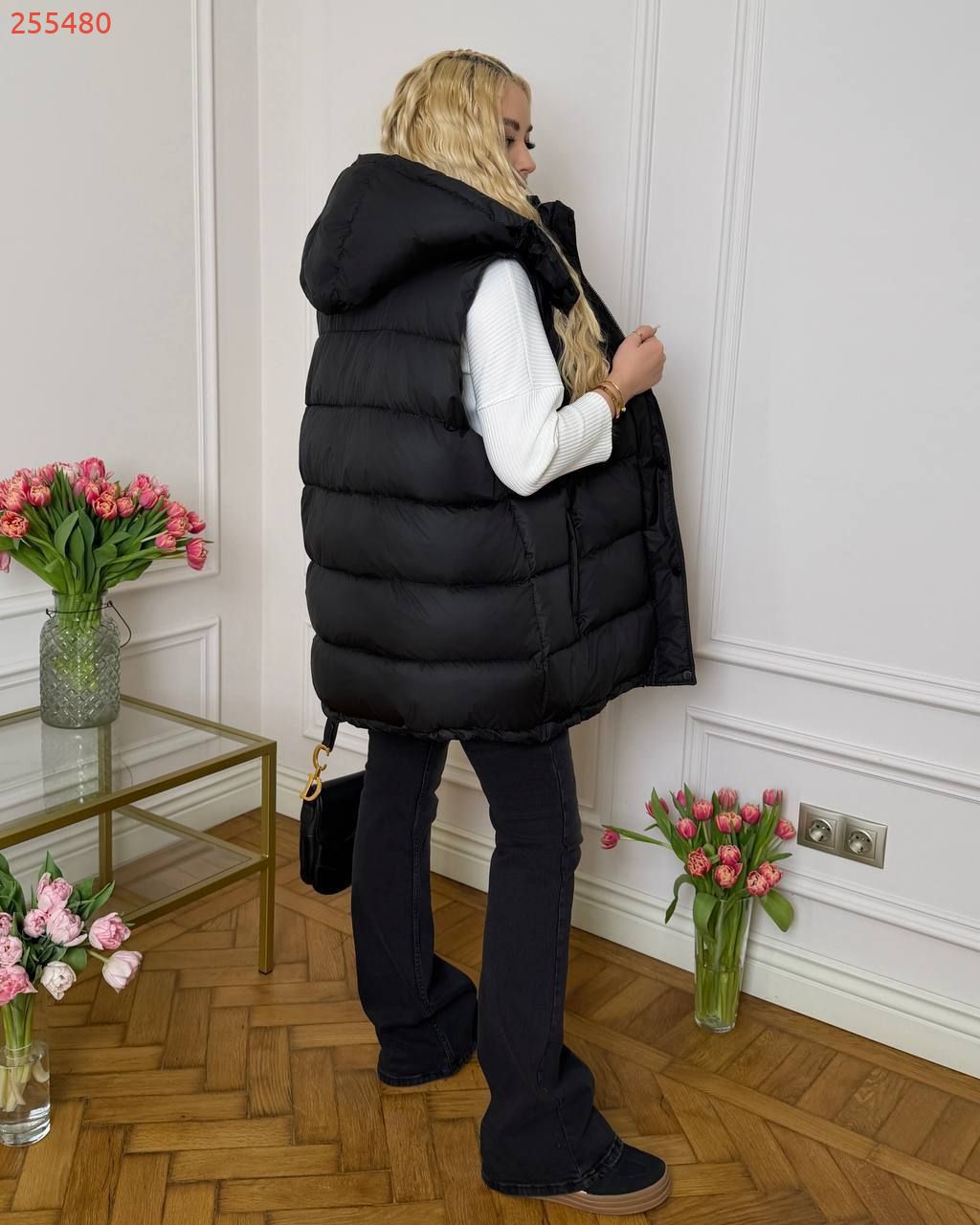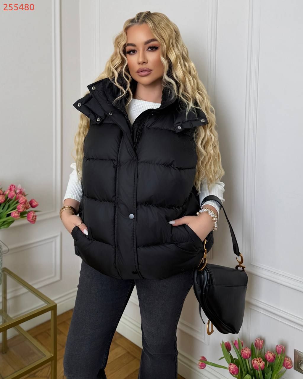 Жилет зі зйомним капюшоном чорний №255480