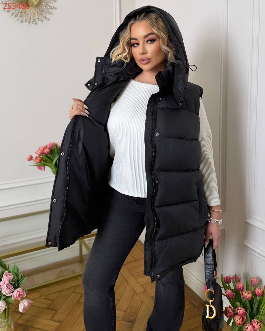 Жилет зі зйомним капюшоном в самих трендових кольорах.