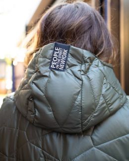 Стильна стегана жилетка прямого крою з накладними кишенями, зручний глибокий капюшон, якісна фурнітура, нашивка