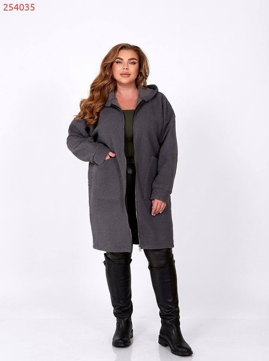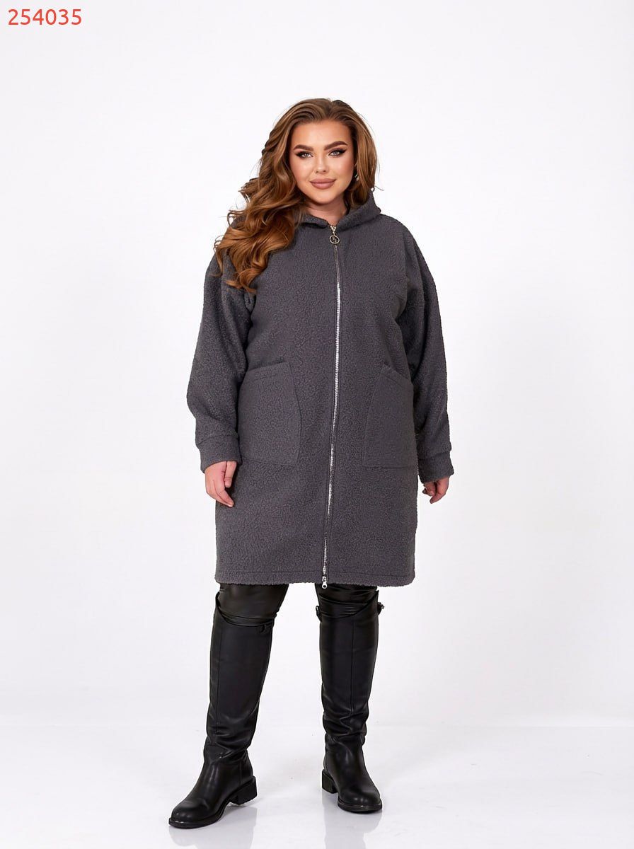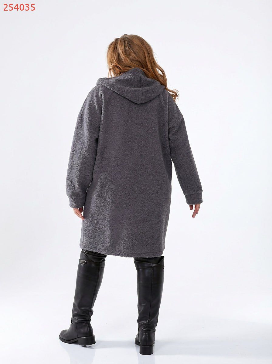 Неймовірно стильний, комфортний кардиган із якісної тканини «баранець» (середня розтяжність). Кардиган має прямий вільний силует та капюшон. Лінія плеча спущена, рукав на манжеті. Застібається на блискавку. Попереду є дві накладні кишені.