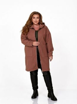 Неймовірно стильний, комфортний кардиган із якісної тканини «баранець» (середня розтяжність). Кардиган має прямий вільний силует та капюшон. Лінія плеча спущена, рукав на манжеті. Застібається на блискавку. Попереду є дві накладні кишені.