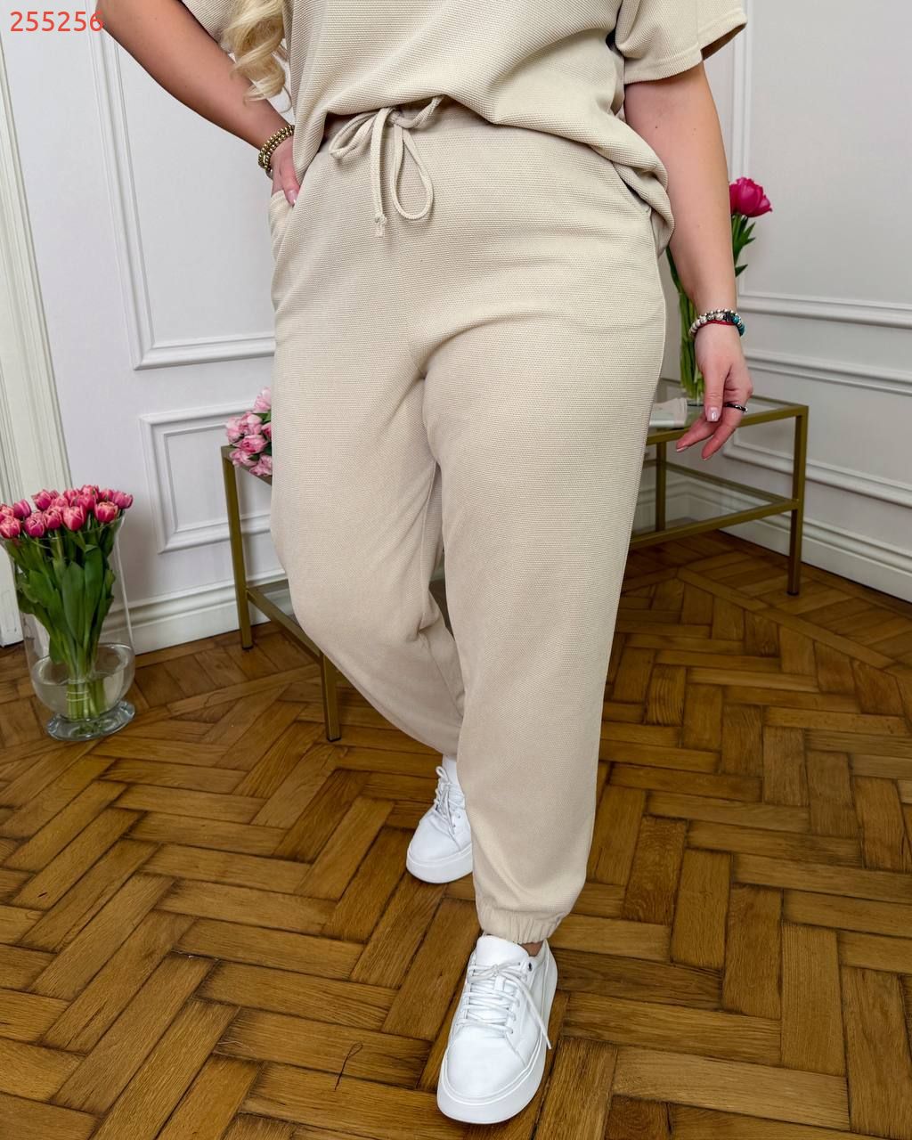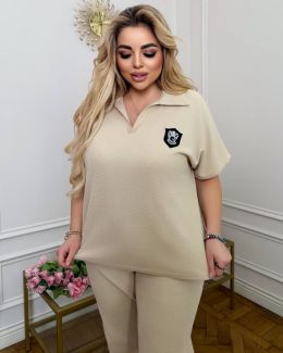 Тканина: трикотаж еластан: футболка поло у стилі оверсайз з Акс + штани з високою посадкою на еластичній гумці, з кишенями в бічних швах, низ штанів на гумці