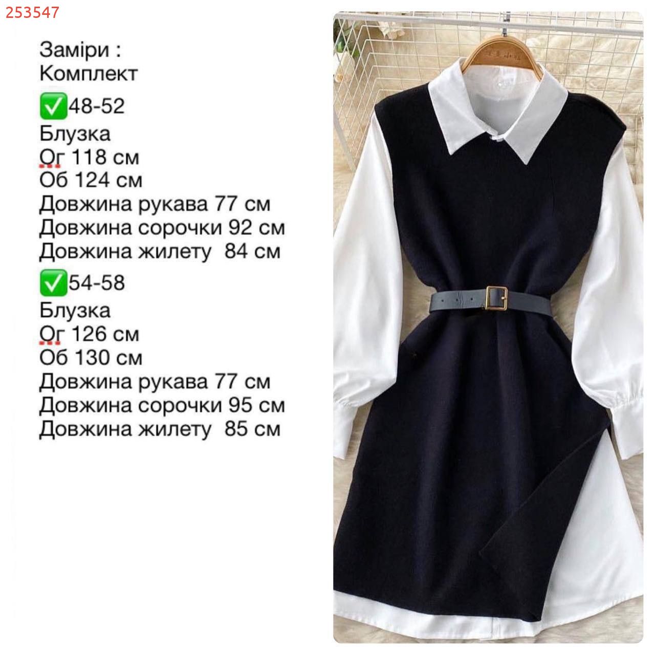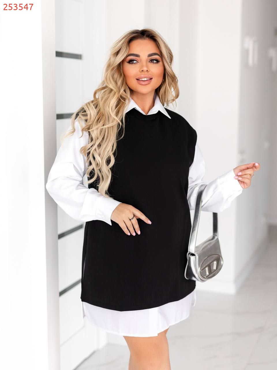 Стильний комплект «2 в 1», що поєднує комфорт та елегантність. У комплекті туніка-сорочка з натурального коттону та накидка з щільного трикотажу вільного крою з розрізами з боків. Можна носити разом або окремо, за бажанням доповнити ременем.