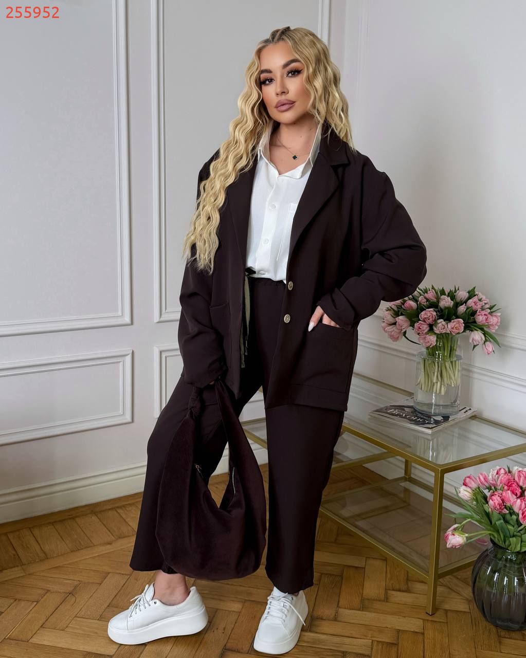Тканина тягнеться не сильно+-5 см але костюм виконаний в стилі овер!