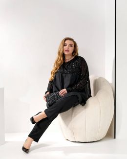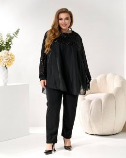 2. Штани (Брюки): Прямого/трохи звуженого силуету, з креп-дайвінгу, з лампасами з паєтки, що візуально витягують силует!