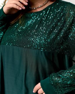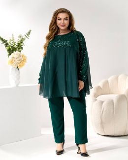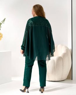 3. Накидка/Туніка: Вільний, летючий крій з шифону з оздобленням паєтками на плечах та рукавах. Можна носити поверх майки або як стильний жакет.