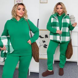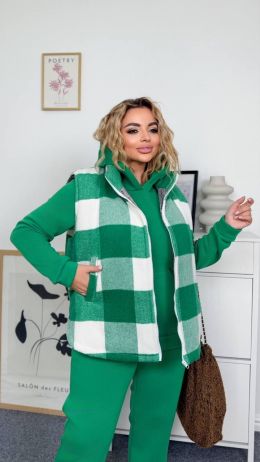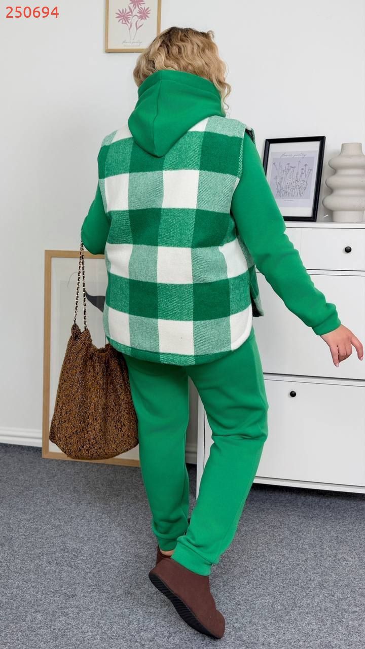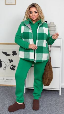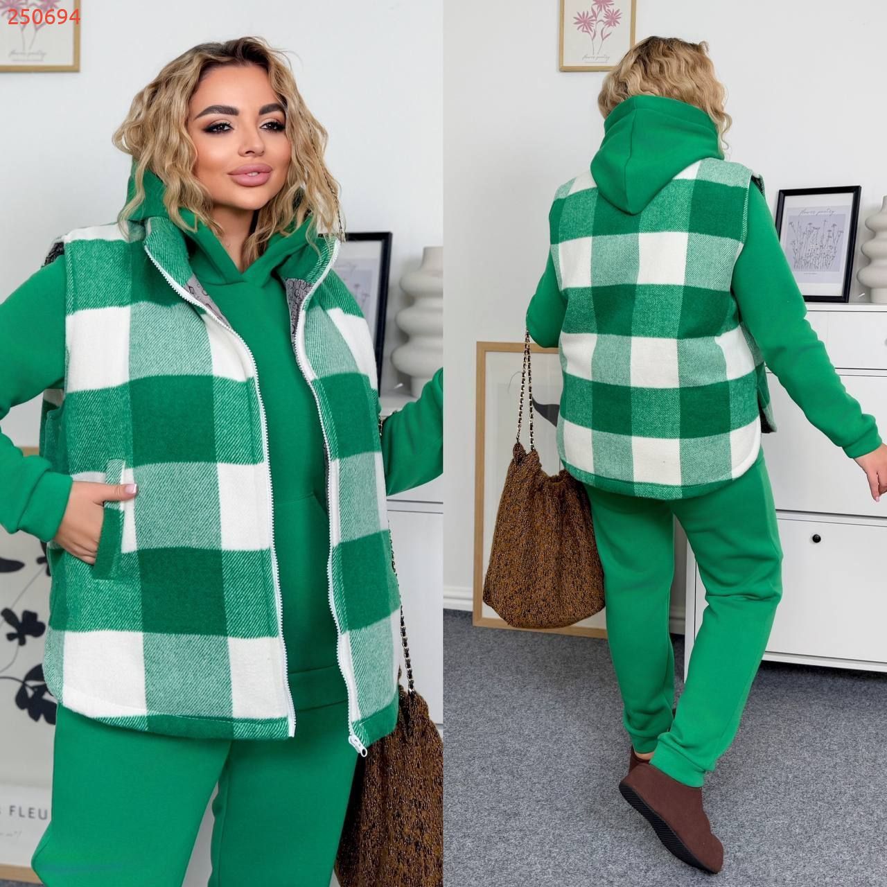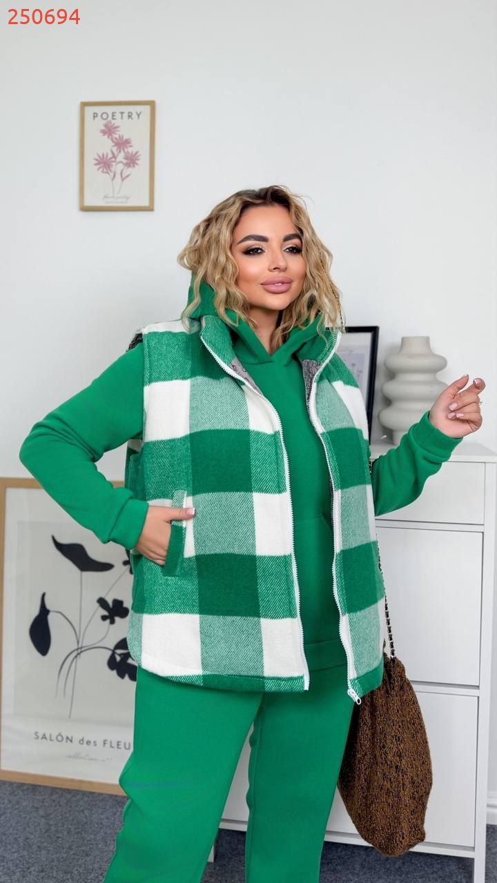 Осінній утеплений костюм трійка - жилет + худі + штани . Жилет на блискавці , комір стійка , з кишенями .