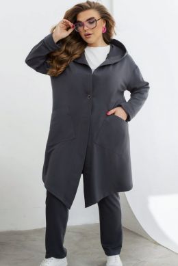 Неймовірно яскравий та стильний весняний костюм трійка, який об'єднує комфорт та модний дизайн. Футболка оверсайз крою з рукавами 3/4 та напівкруглою горловиною створює легкий та модний образ. Декоративна термоналіпка високої якості на грудях є акцентом образу. Штани прямого крою із гумкою на талії та кишенями поєднують стиль і зручність. Асиметричний кардиган із капюшоном і гудзиком по центру створює цікавий акцент. Подовжена задня частина та асиметрія передньої частини роблять цей образ ще більш вишуканим. Кишені на талії, також розміщені асиметрично, додають динаміки та оригінальності цьому весняному комплекту.