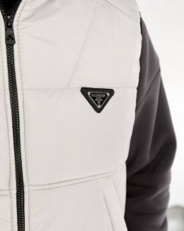 Утепленого жилета на блискавці з двома бігунками високої якості, легко застібається та розстібається , легкий і теплий, з вшитим капюшоном. Жилет має пʼять кишень - чотири бокові врізні кишені з похилим входом – зручні для рук і дрібних речей, і один внутрішній. На грудях -нашивка, на підкладці з плащівці.