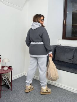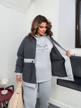 Костюм-трійка виконаний у затишному, повсякденному стилі та складається з трьох елементів:
