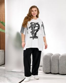 Виміри: довжина футболки 80 см по переду, 85 см позаду, довжина штанів 105 см, низ можна стягнути .