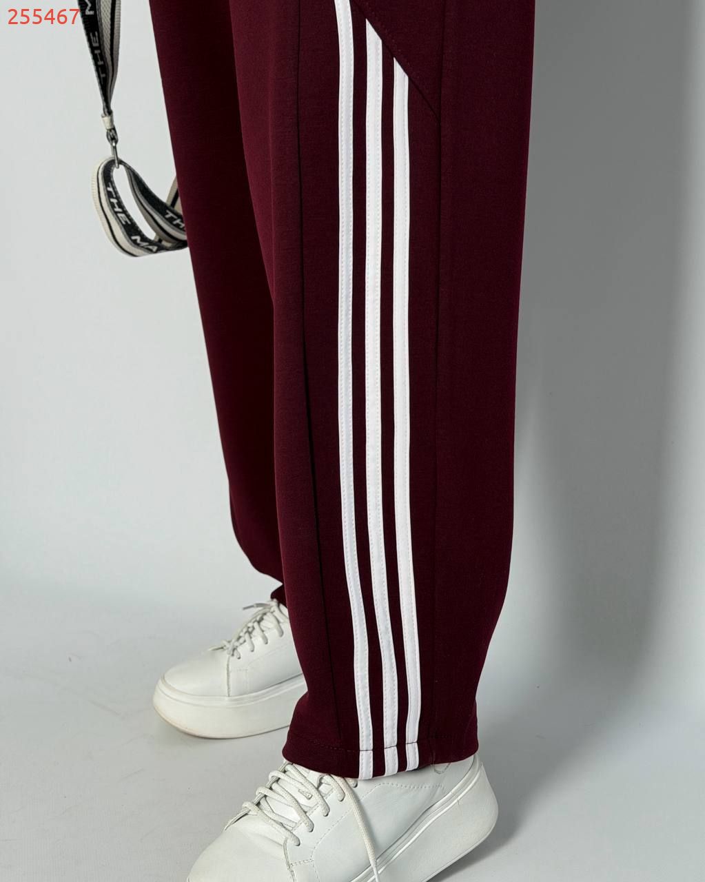 Штани - вільна комфортна посадка , прямі, еластичний пояс на резинці, бокові кишені, декоративні вставки з лампасами в нижній частині.