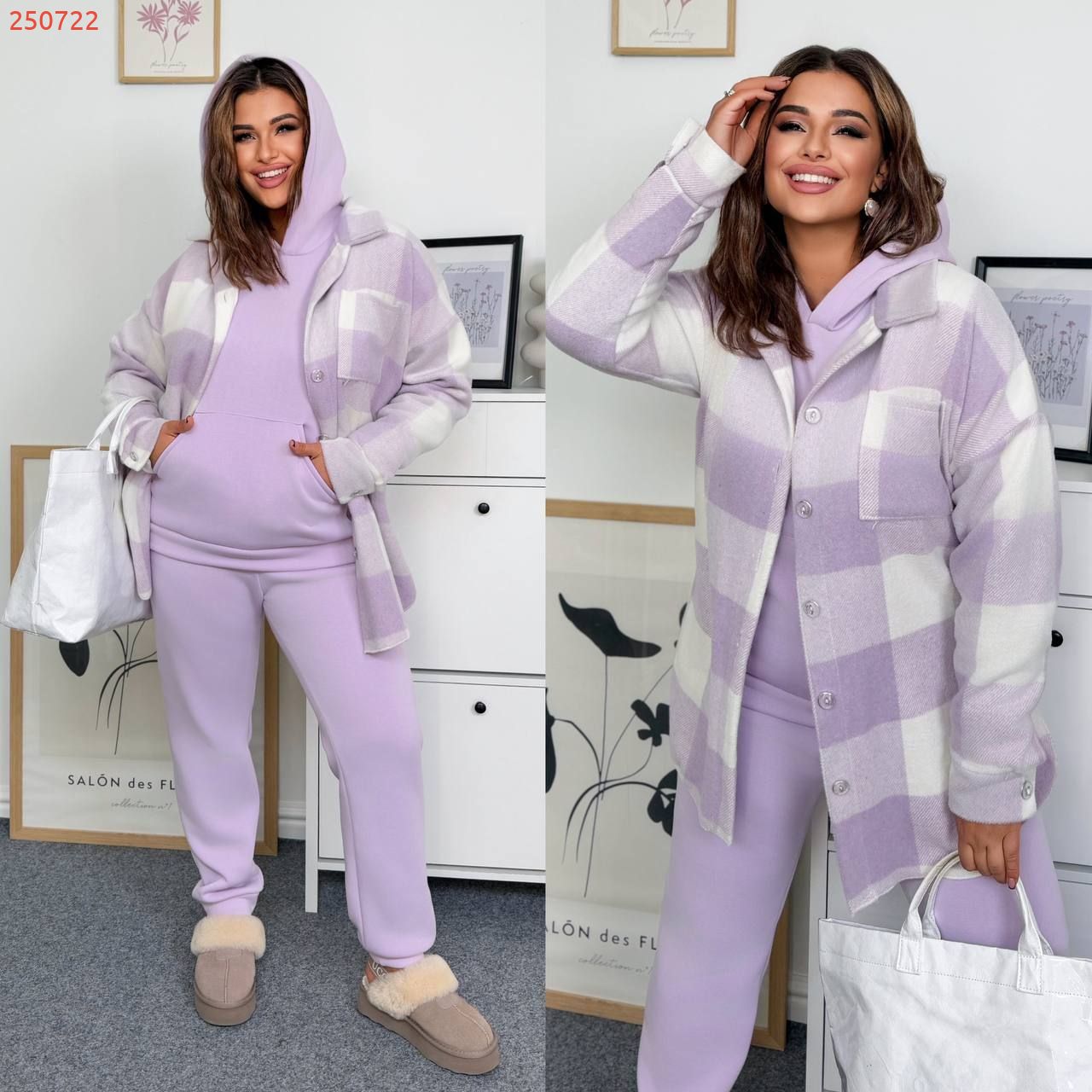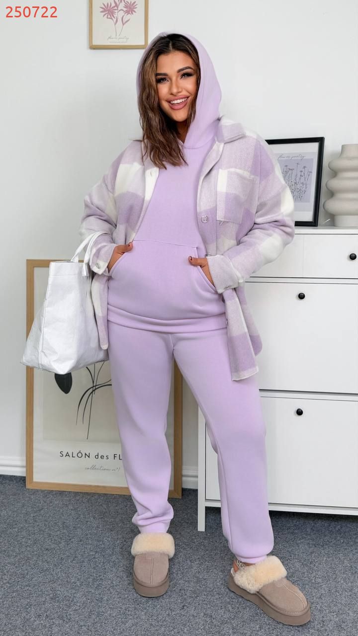 Худі на манжеті , з капюшоном , кишеня кінгуру . Штани з високою посадкою на гумці , з бічними кишенями , низ на манжеті .