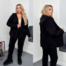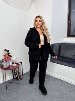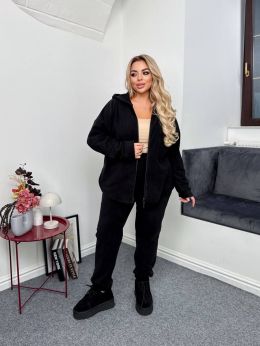 Кофта на блискавці з капюшоном , штани з високою посадкою , на манжеті , пояс на гумці , з бічними кишенями .
