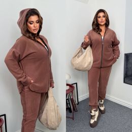 Кофта на блискавці з капюшоном , штани з високою посадкою , на манжеті , пояс на гумці , з бічними кишенями .