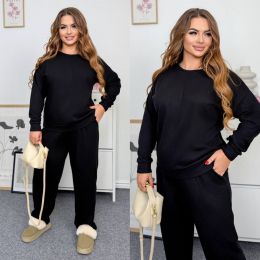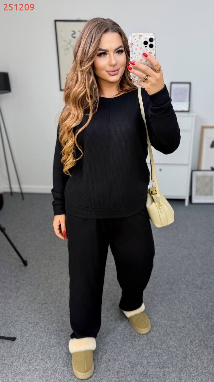 Теплий костюм на холодну пору - кофта + штани . Кофта прямого покрою , на манжеті . Широкі штани з високою посадкою на гумці .