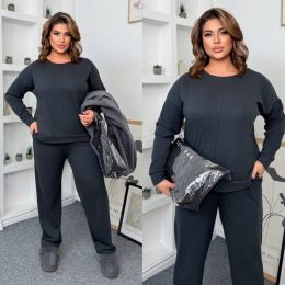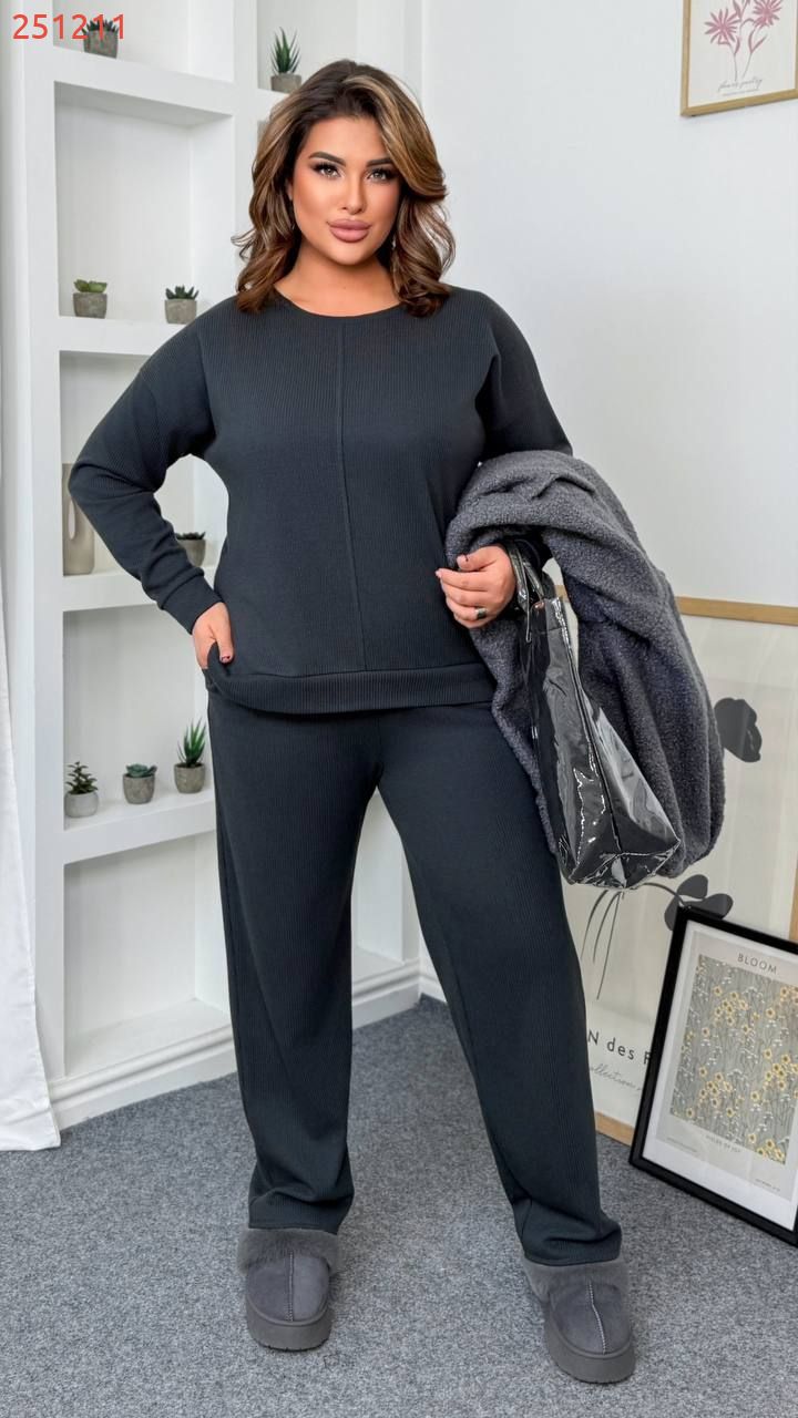 Теплий костюм на холодну пору - кофта + штани . Кофта прямого покрою , на манжеті . Широкі штани з високою посадкою на гумці .