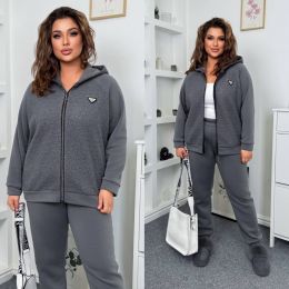 Теплий костюм на холодну пору . Комбінований бомбер на блискавці , з капюшоном . Штани з високою посадкою , пояс на гумці , бічні кишені .