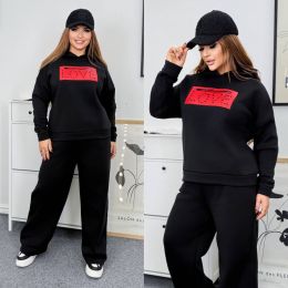 Теплий костюм на холодну пору . Світшот на манжеті , з капюшоном . Широкі штани з високою посадкою , пояс на гумці , бічні кишені .