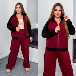 Теплий костюм на холодну пору . Комбінований бомбер на блискавці , з стійкою . Штани з високою посадкою , пояс на гумці , з ломпасом , бічні кишені .