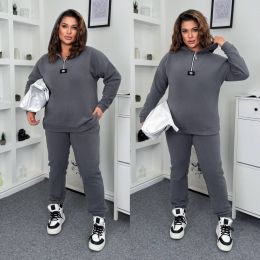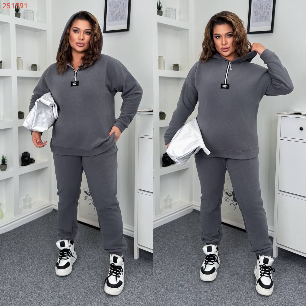 Теплий костюм на холодну пору . Стильний світшот зверху на блискавці , з капюшоном . Штани з високою посадкою , пояс на гумці , бічні кишені .