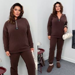 Теплий костюм на холодну пору . Стильний світшот зверху на блискавці , з капюшоном . Штани з високою посадкою , пояс на гумці , бічні кишені .
