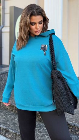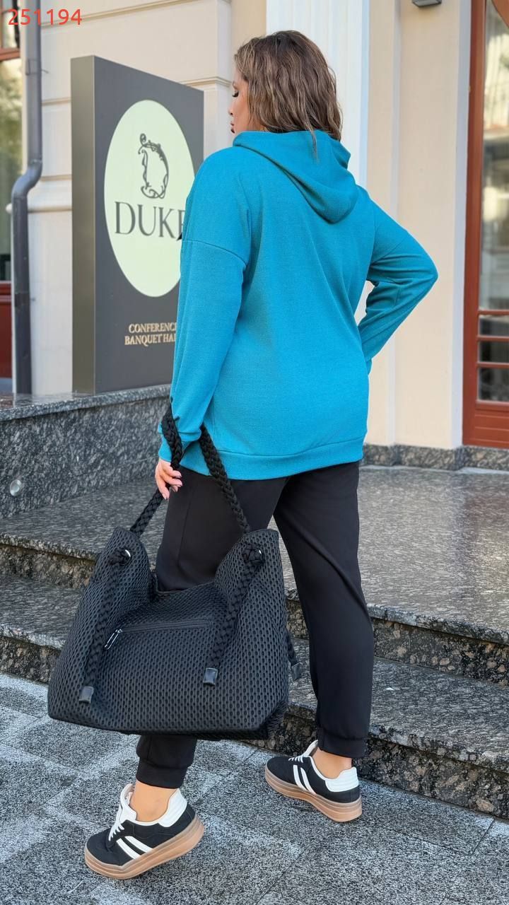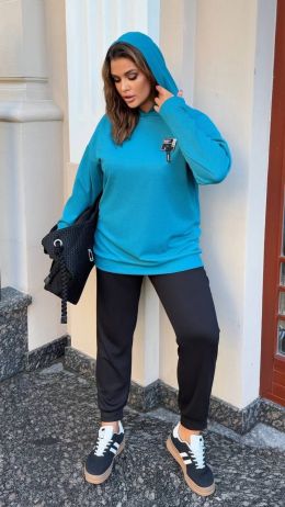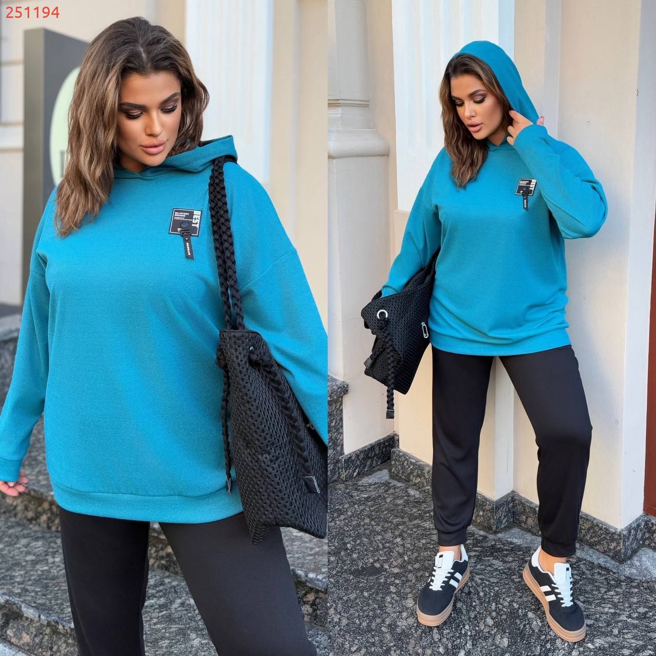 Довжина штанів : 104 см. Прогулянковий костюм двійка . Худі подовжене , на манжеті , з капюшоном .