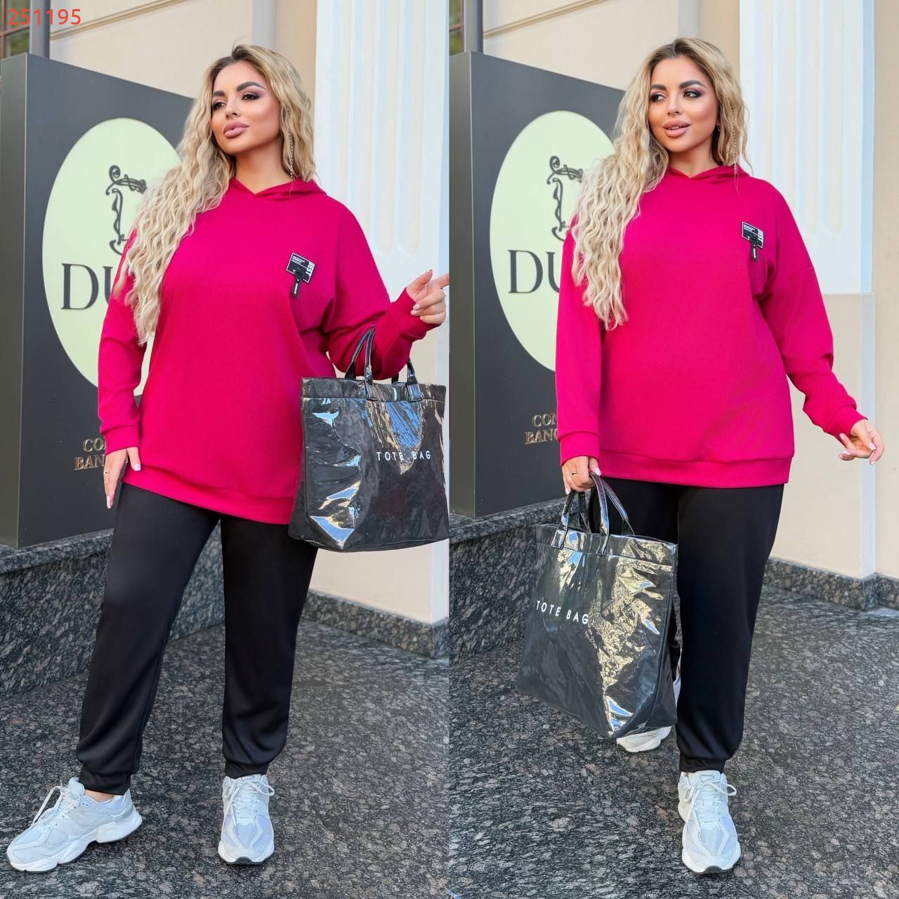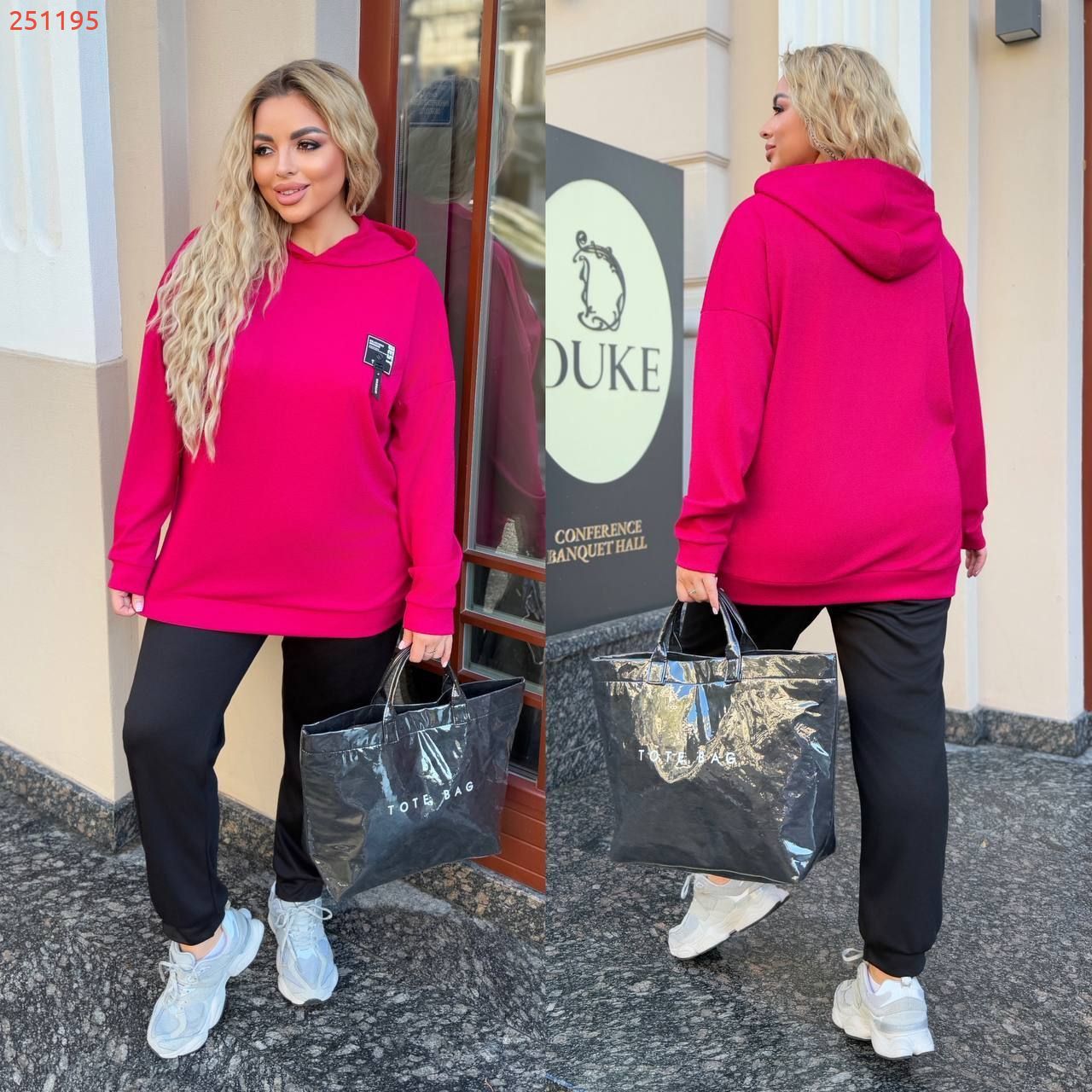 Довжина штанів : 104 см. Прогулянковий костюм двійка . Худі подовжене , на манжеті , з капюшоном .
