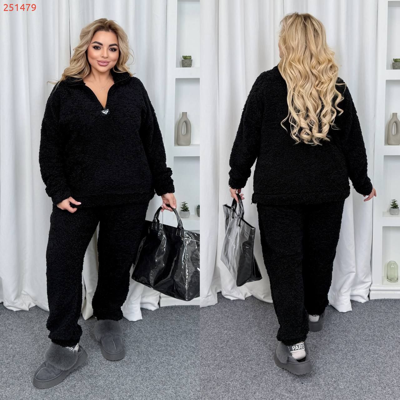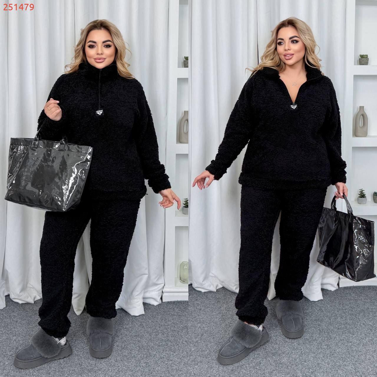 Довжина штанів : 110 см. Теплий костюм двійка . Худі подовжене , на манжеті , з коміром - стійка на блискавці . Штани з високою посадкою на гумці , низ на манжеті