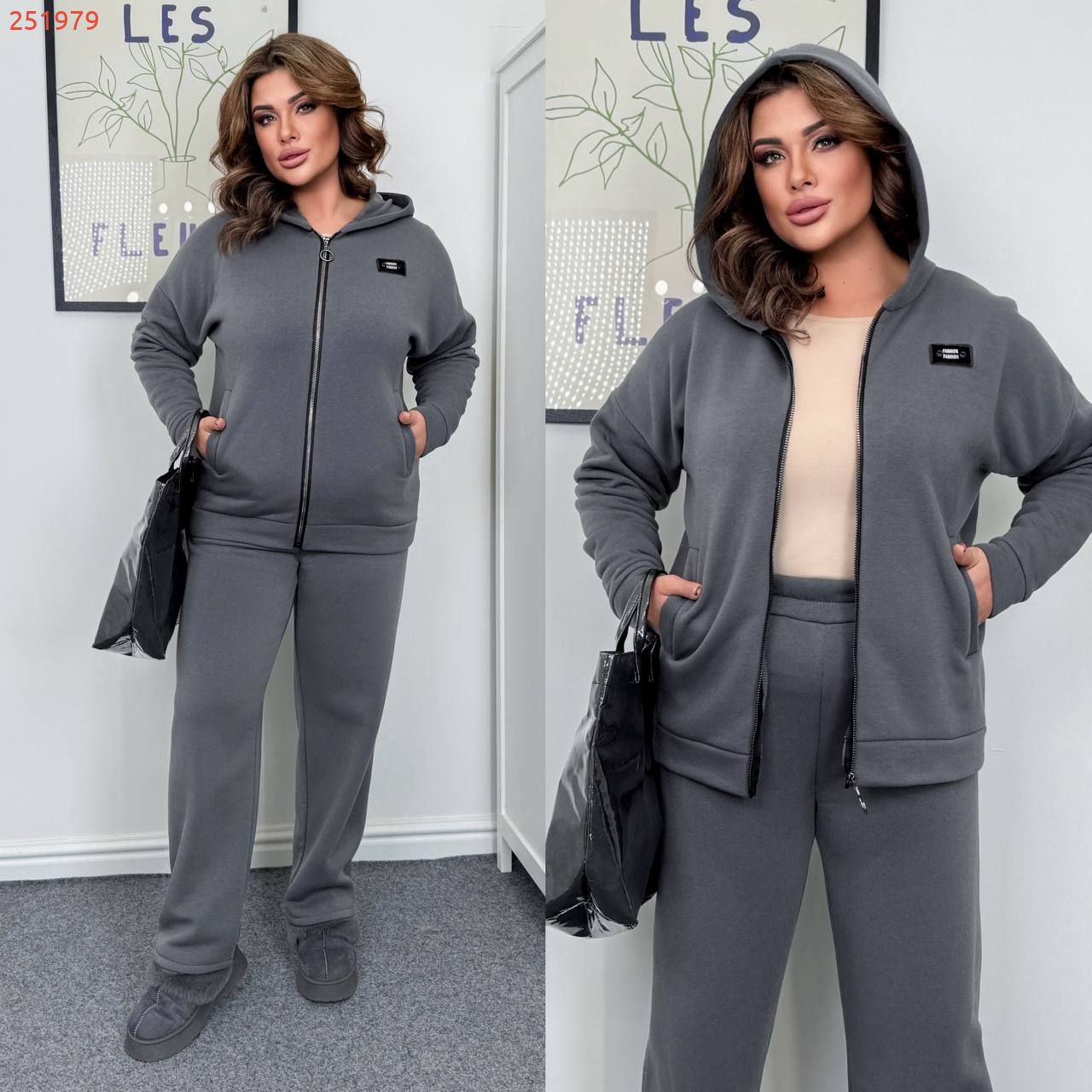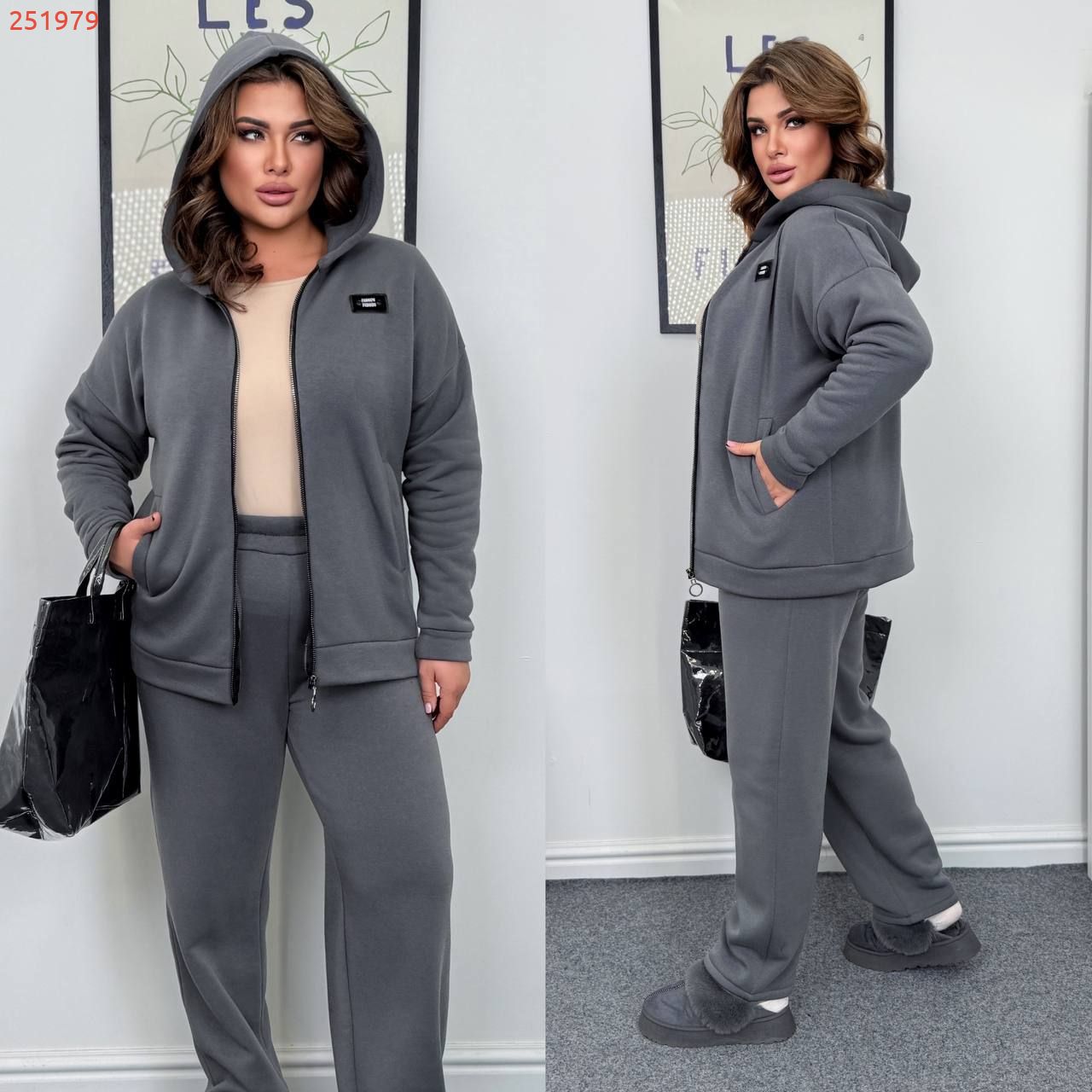 Довжина штанів : 110 см. Теплий костюм на холодну пору . Штани з високою посадкою , пояс на гумці .