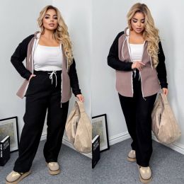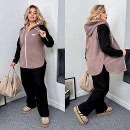 Довжина штанів : 108 см. Теплий костюм на холодну пору . Штани з високою посадкою , пояс на гумці та шнуркі . Кофта прямого покрою , з капюшоном , на блискавці , рукав реглан .