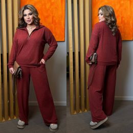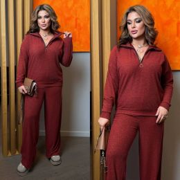 Довжина штанів : 110 см. Стильний костюм двійка . Штани з високою посадкою , пояс на гумці . Кофта прямого покрою на манжеті , комір на блискавці .