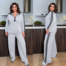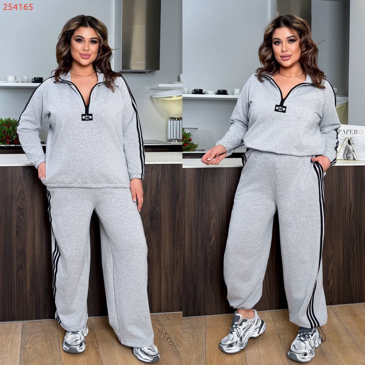 Довжина штанів : 106 см Штани з ломпасом , з високою посадкою , пояс на гумці , бічні кишені , низ на фіксаторі . Кофта прямого покрою , з коміром на блискавці , рукав з ломпасом , низ на фіксаторі .