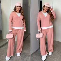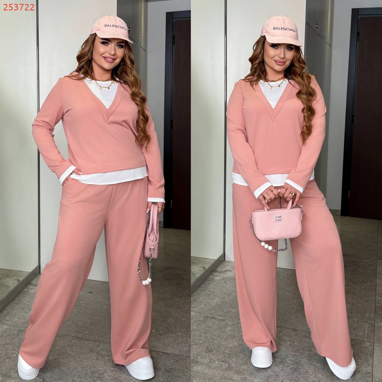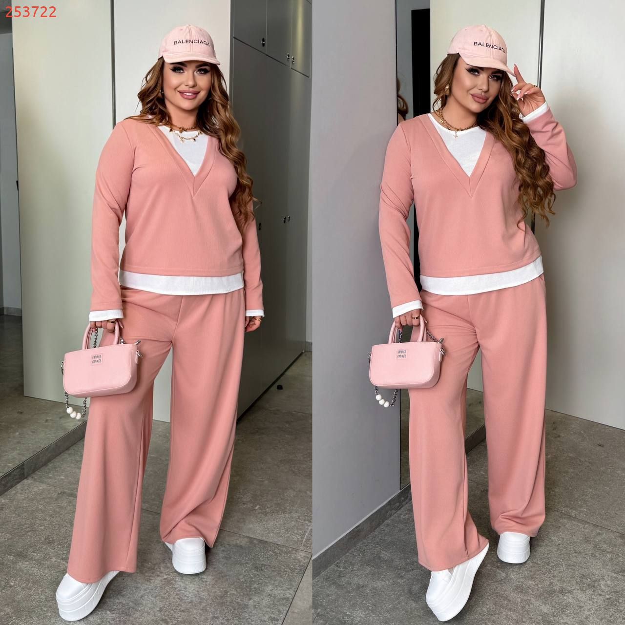 Довжина штанів : 110 см Штани з високою посадкою , пояс на гумці . Кофта прямого покрою , імітація двійки .