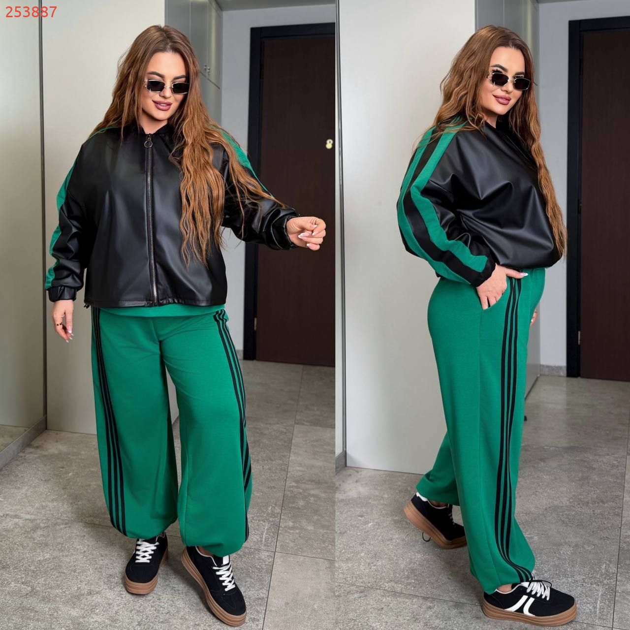 Кофта прямого покрою на манжеті , рукав з ломпасом . Штани з бічними ломпасами , з високою посадкою , пояс на гумці , з бічними кишенями , низ на фіксаторі .