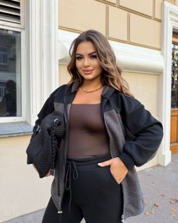 Тканина: Якісний мʼякий дуже теплий еко баранчик на флісі, комбінований чорною Хб стрейч триниткою на флісі. Добра розтяжність.