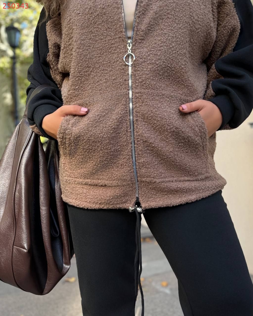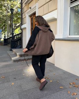 Тканина: Якісний мʼякий дуже теплий еко баранчик на флісі, комбінований чорною Хб стрейч триниткою на флісі. Добра розтяжність.