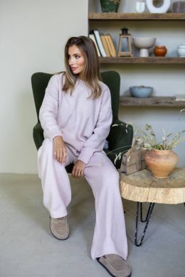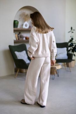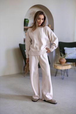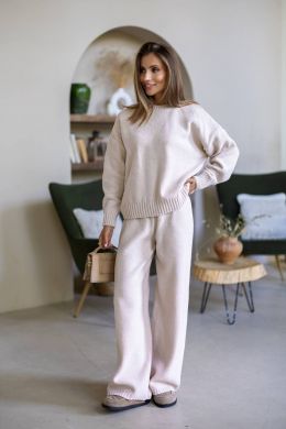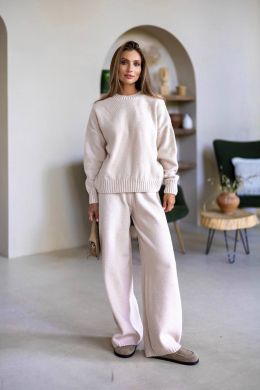 Затишний костюм із щільної фактурної в'язки з м'яким приляганням до тіла. Вільний светр та прямі штани створюють елегантний, розслаблений образ щодня.